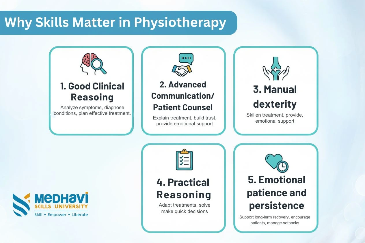 Employers within the ever-changing healthcare industry today want careers who are skilled in clinical concepts and are ready to work on Day 1. Medhavi Skills University (MSU) is one of India's first skills universities to combine academic education with workplace exposure, hands-on learning, and clinical experience. MSU's BPT course goes beyond conventional classroom education; it provides students with training experiences, labs and simulations, internships, and opportunities to interact with patients at universities' partner hospitals and allied rehabilitation centres.