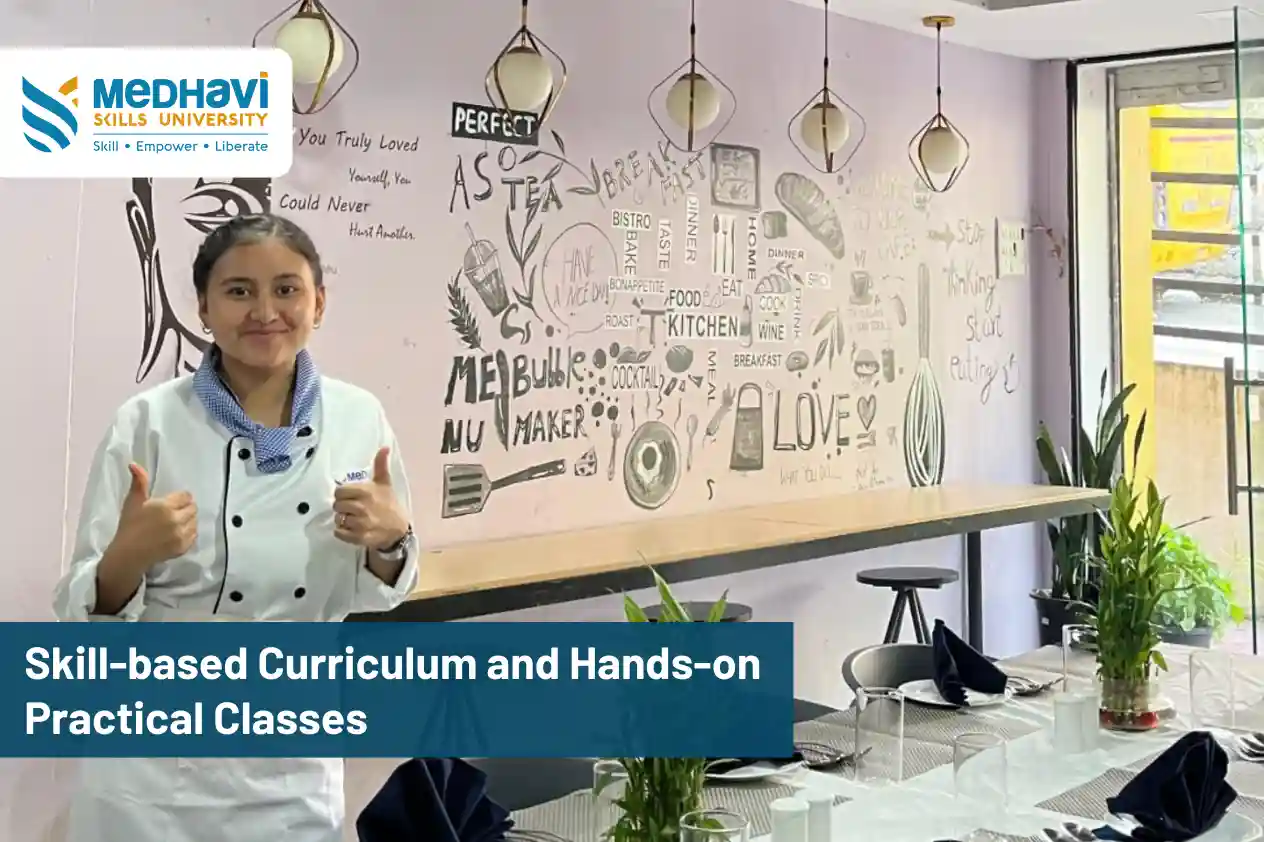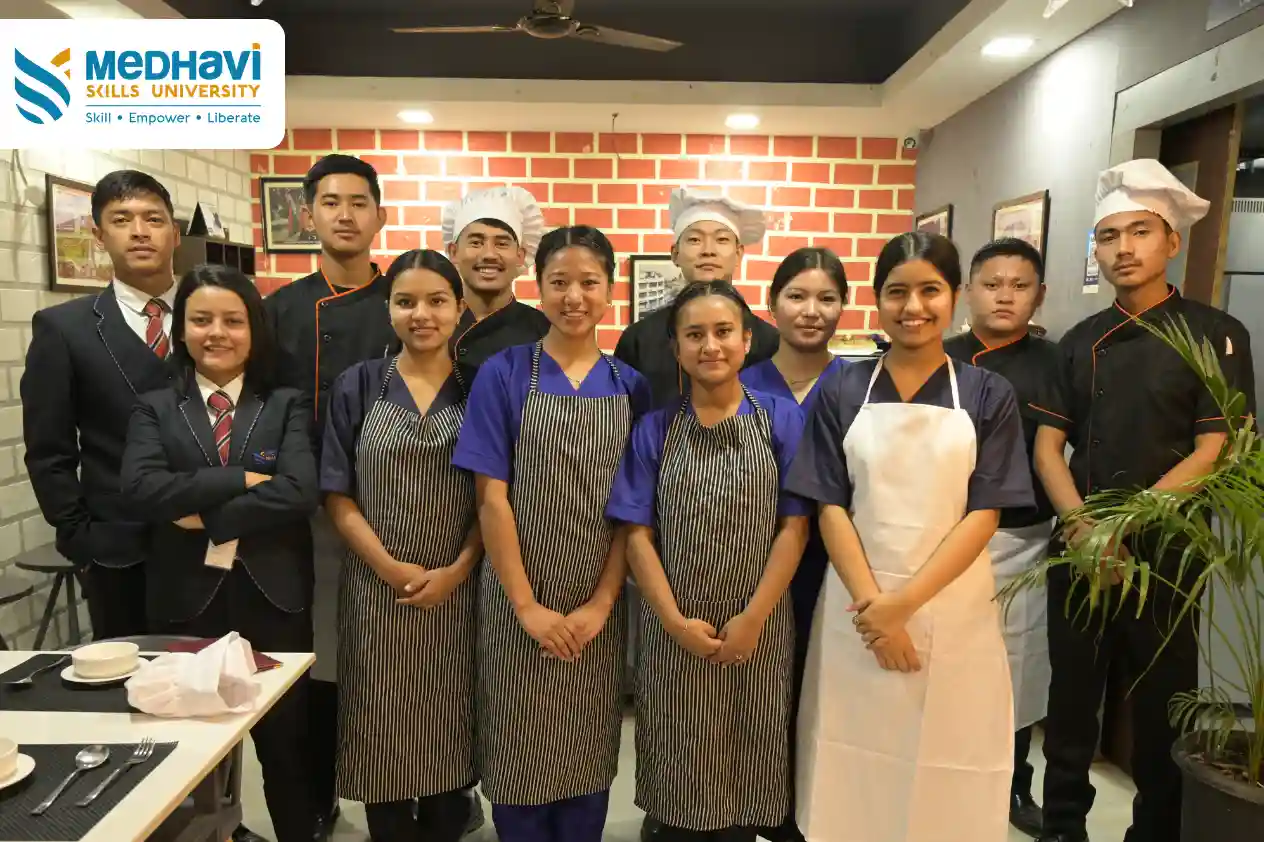 Take the inspiring journey of Sanjeena Chhetri for instance, a student at Medhavi Skills University pursuing B.Sc in Hospitality and Hotel Management. Her story is the testament to how practical training, experiential learning, and hands-on experience can truly transform one’s learning into career readiness.