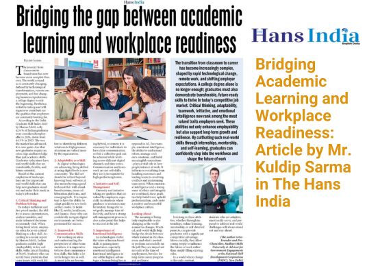 Bridging Academic Learning and Workplace Readiness: Article by Mr. Kuldip Sarma in The Hans India
